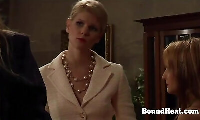 Slim light haired teens enjoyed their first BDSM practice with two freaks