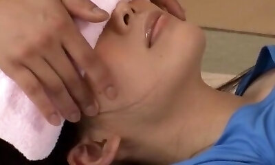 Japanese Cheating wifey get massage fuck infornt of his Husband.