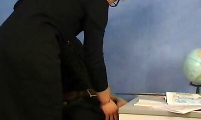 TrickyOldTeacher - Teacher convinces student to suck cock and fuck her slit hard